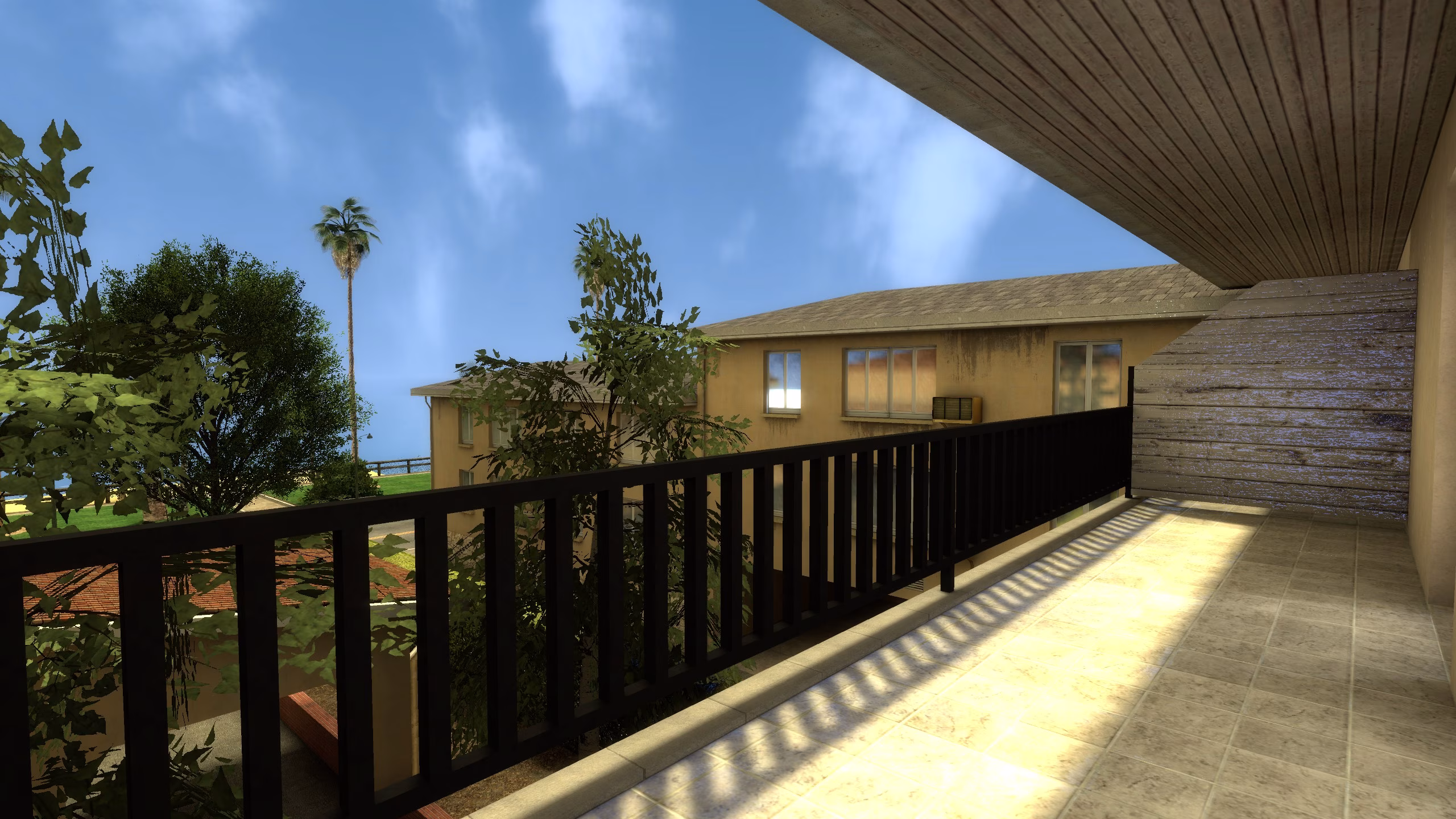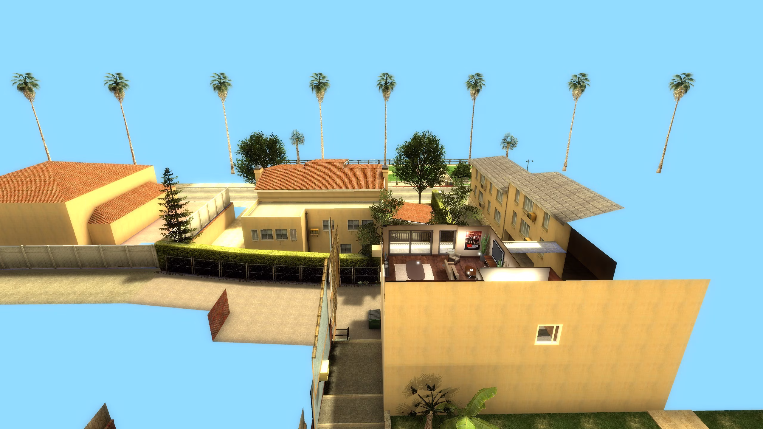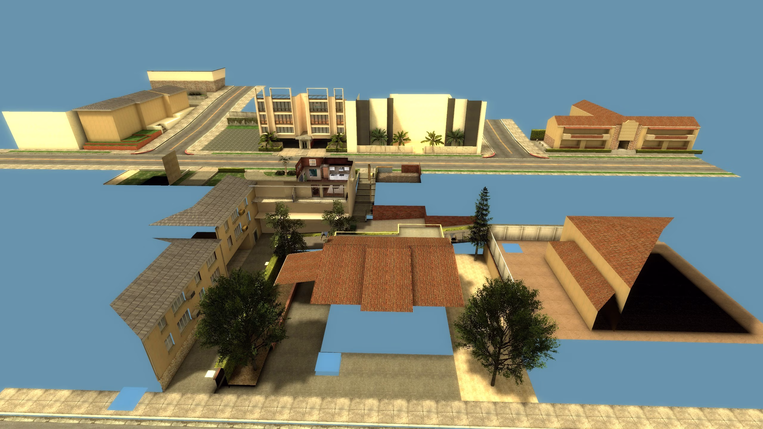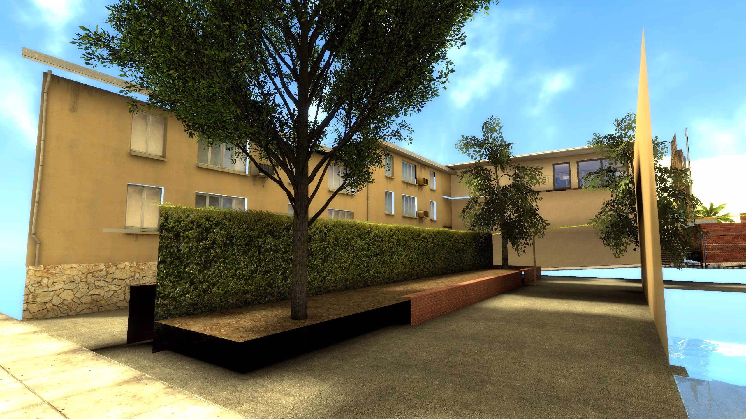 Ainsi, toutes les surfaces ont leur lightmap définie au plus haut niveau de texels supporté par le moteur du jeu, c’est à dire 2. L’idée était d’exploiter les nouveauté offertes par Facepunch au travers des dernières mises à jour de Garry’s Mod à la date de création de cette map. En effet, plusieurs fonctionnalités présentes sur VRAD de CS:GO ayant été ajoutées, notamment l’ambient occlusion et la compilation des lightmap sur les prop_static, j’ai trouvé intéressant de les essayer sur une petite scène où les contraintes techniques ne poseraient pas problèmes.